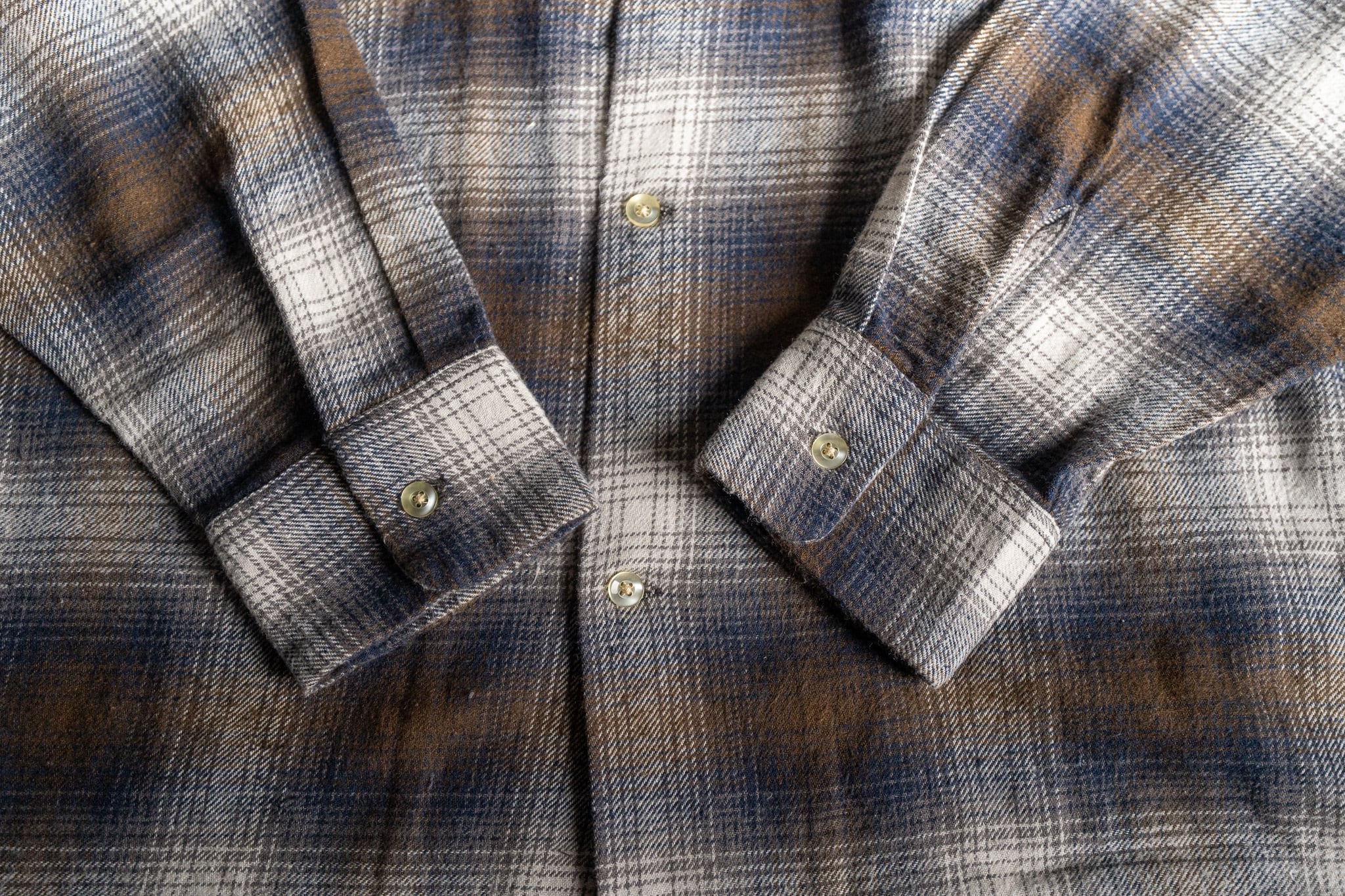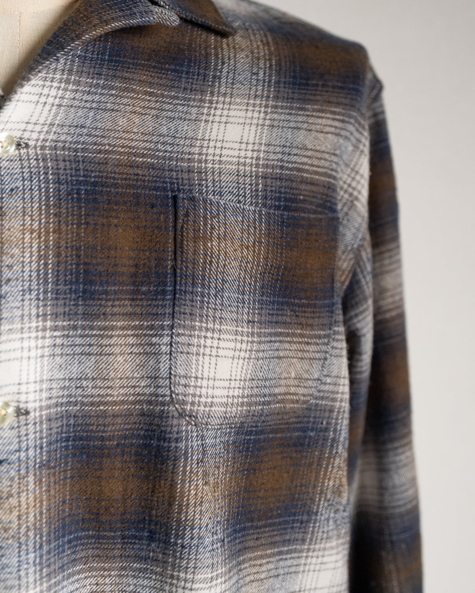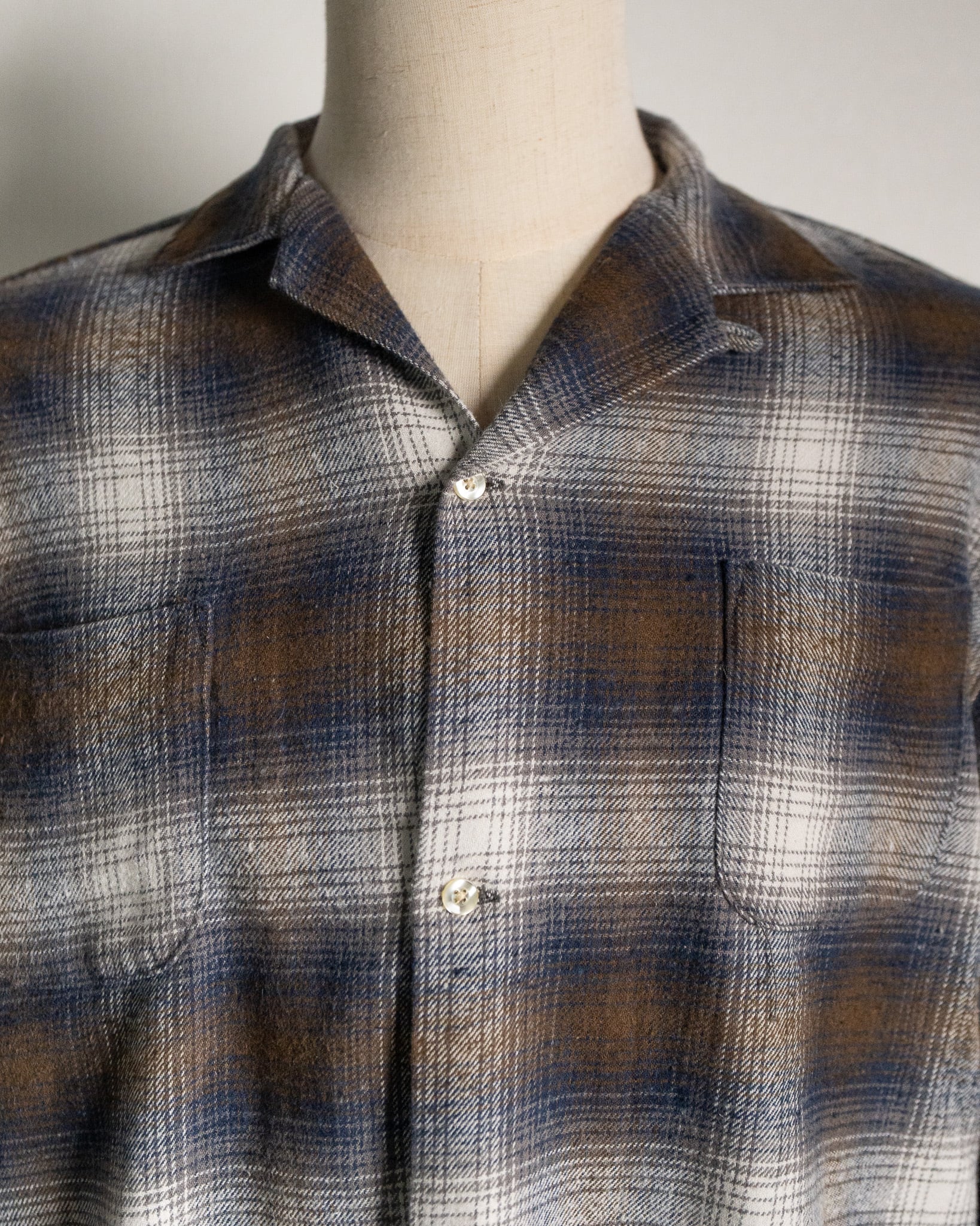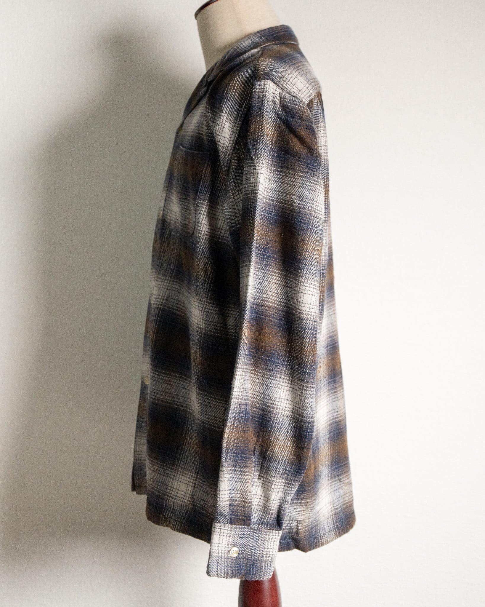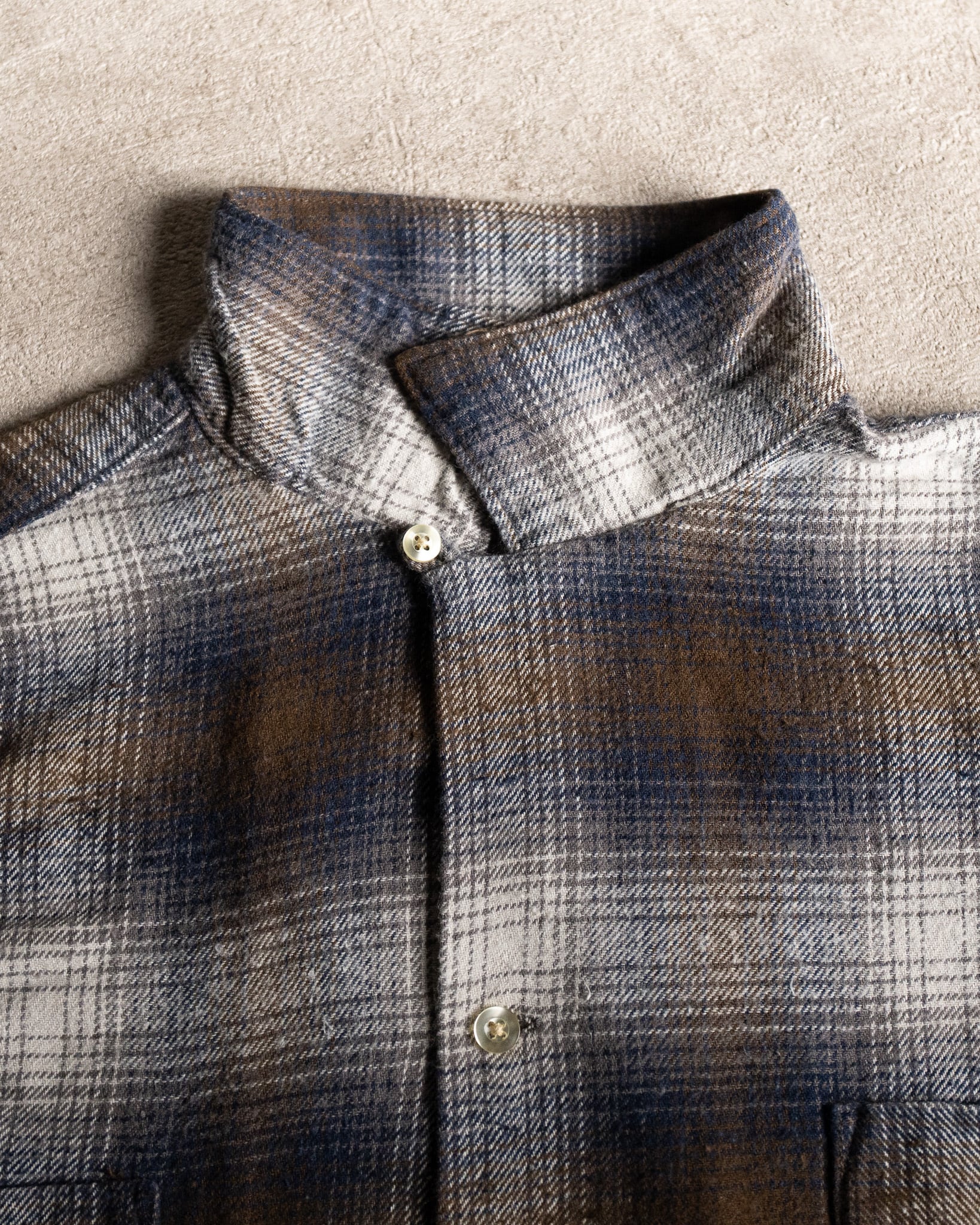 今回、『TOWNCRAFT』より入荷した『60s LOOP COLLAR NEL OMBRE SHIRTS』は、程よい厚みの微起毛フランネル生地を採用しており、非常に肌触りのよい着心地となっております。