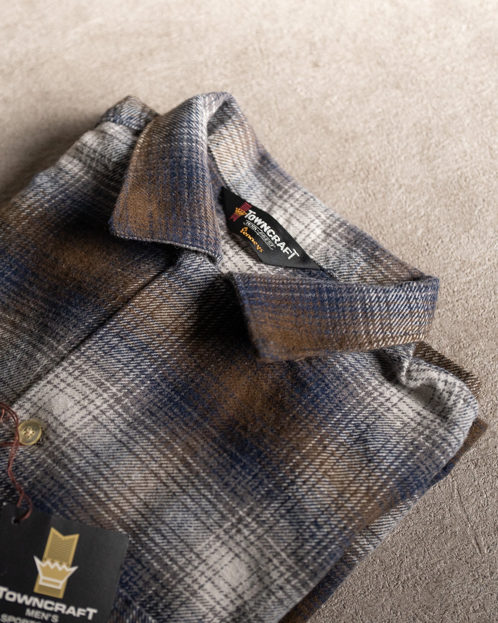 【TOWN CRAFT】 "BROWN" 60s Loop Collar Nel Ombre Shirts 新品 タウンクラフト オンブレシャツ 茶 ブラウン ポケット付き