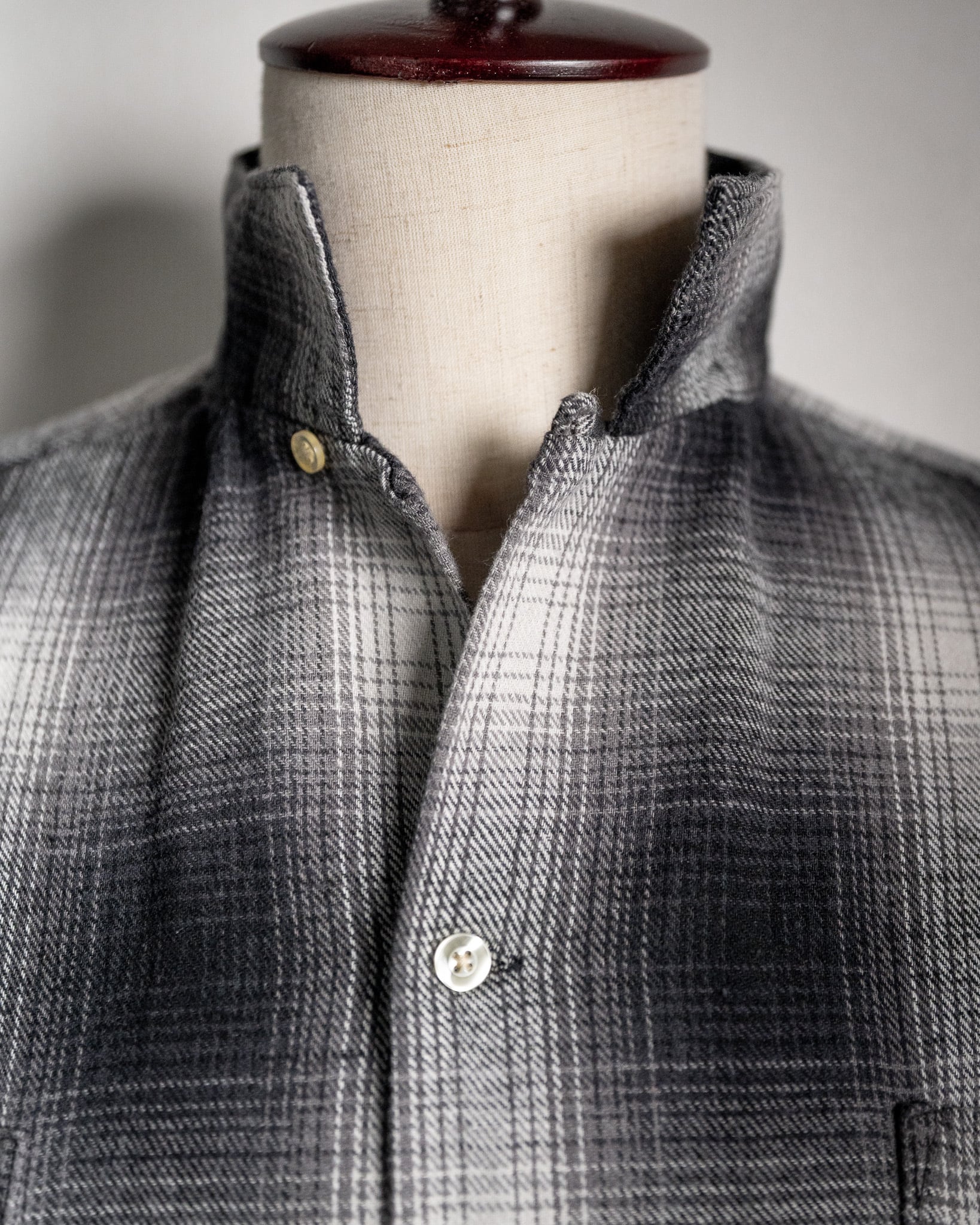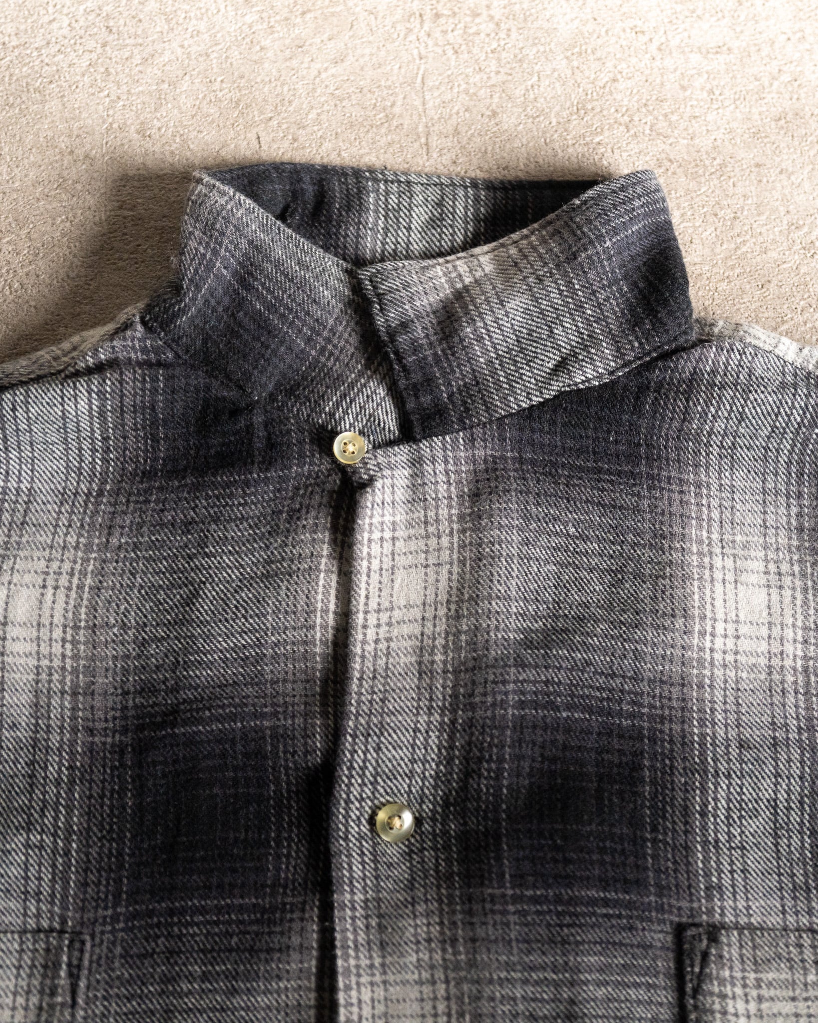 今回、『TOWNCRAFT』より入荷した『60s LOOP COLLAR NEL OMBRE SHIRTS』は、程よい厚みの微起毛フランネル生地を採用しており、非常に肌触りのよい着心地となっております。