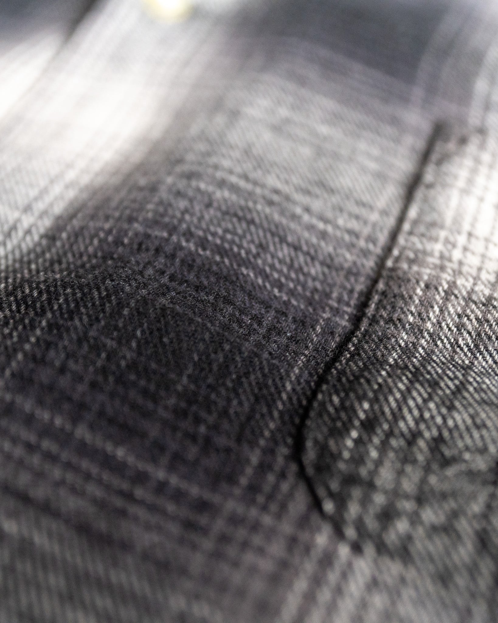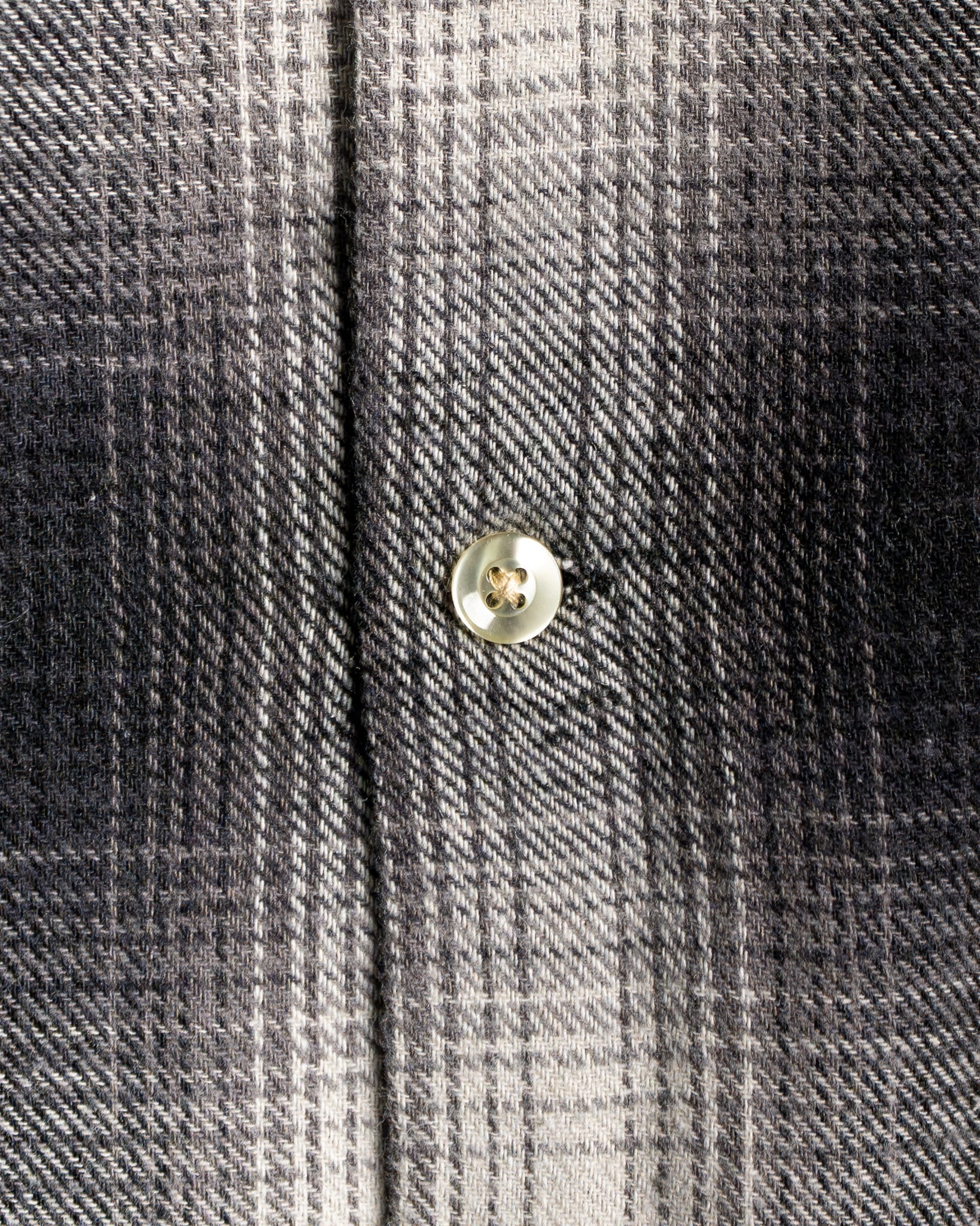 裁断は、柄を丁寧に確認し身頃、襟、ヨーク、袖のすべてのパーツの柄を、左右整えてカッティングされています。