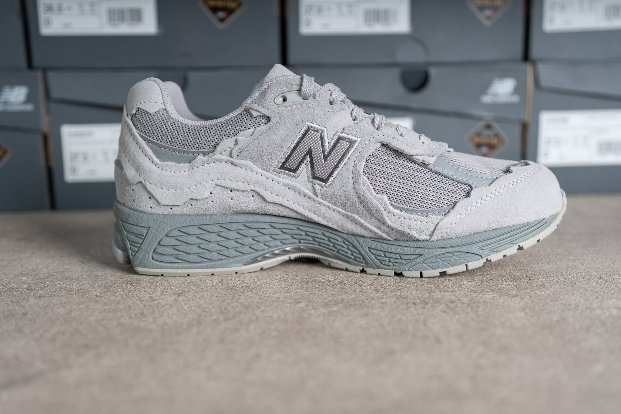 更にスウェードのレイヤーをあえて切りっぱなしで重ねて大胆に再構築した「2002RD」。