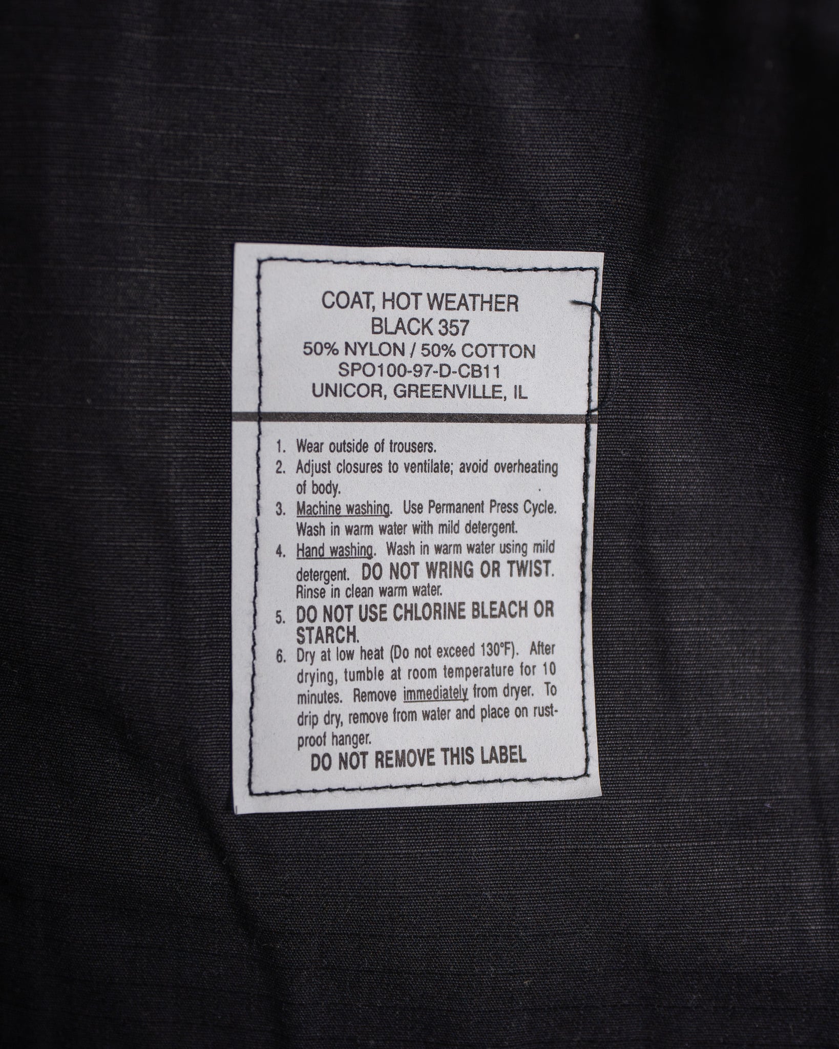 ボディーに使用しているU.S.Army BDU(Battle Dress Uniform)ジャケットは、1997年の1年のみ製造された希少性の高い、主にSWATや特殊部隊、OPFOR(仮想敵部隊)などに支給されていた、実物ミリタリーでは珍しい"Black"カラーです。