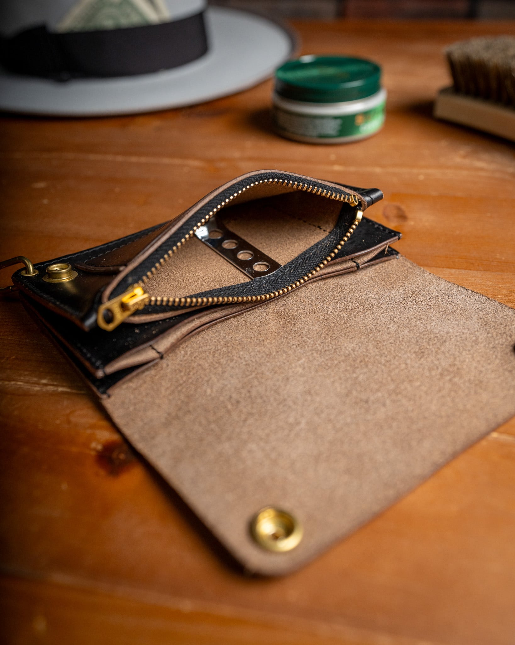 使い始めの美しさはもちろん、数年後、愛着が詰まった手馴染み、美しい光沢を放つ茶芯へと育った姿こそが、このウォレットの完成形です。