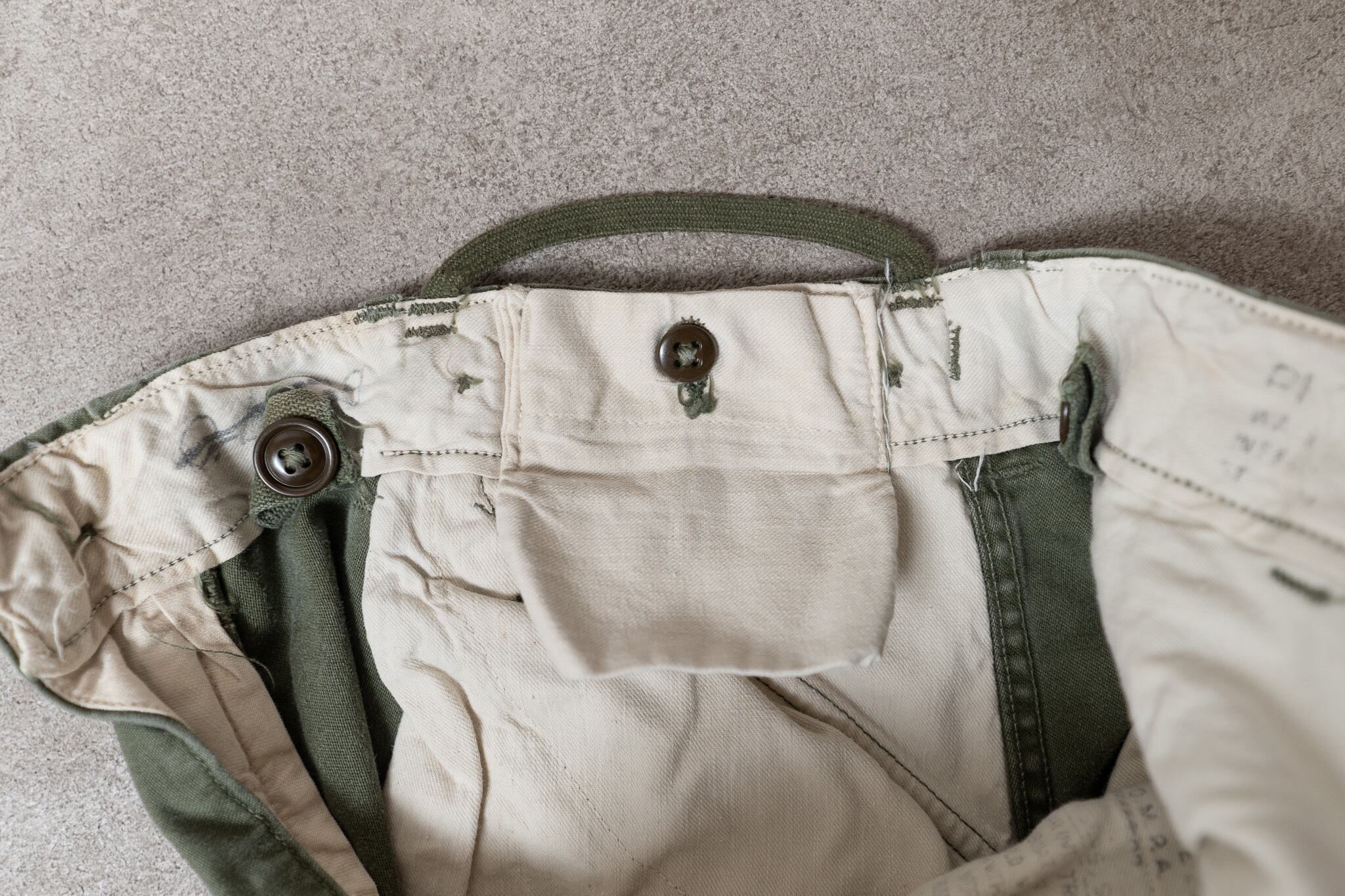 米軍のヴィンテージで無地のODカラーのアイテムは海外でも非常に人気が高く、本当に出てこない究極の1本となります。